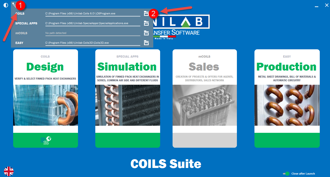 If in your COILS Suite the starting button "Design" is not enabled, it could due to the software path not properly set.
